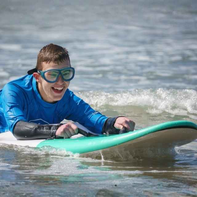 At Blue Horizons, inclusivity lies at the heart of our mission. In addition to our general lessons, we proudly provide adaptive and inclusive programmes designed specifically for individuals with additional needs. We believe everyone should have the opportunity to experience the thrill of riding the waves and we are committed to creating a supportive and welcoming environment where all can thrive.
