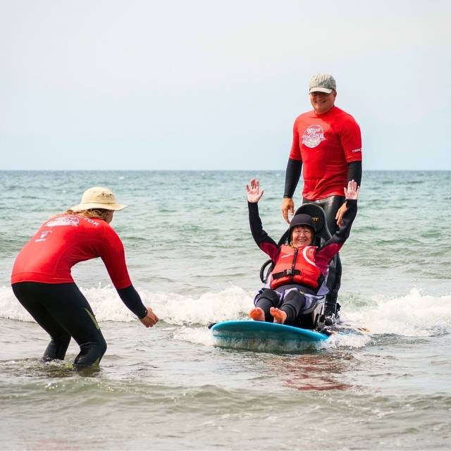 As a not-for-profit surf school, all profits from our lessons are reinvested into community projects, helping us provide adaptive equipment, subsidised sessions and inclusive ocean experiences for people who may otherwise face barriers to taking part.